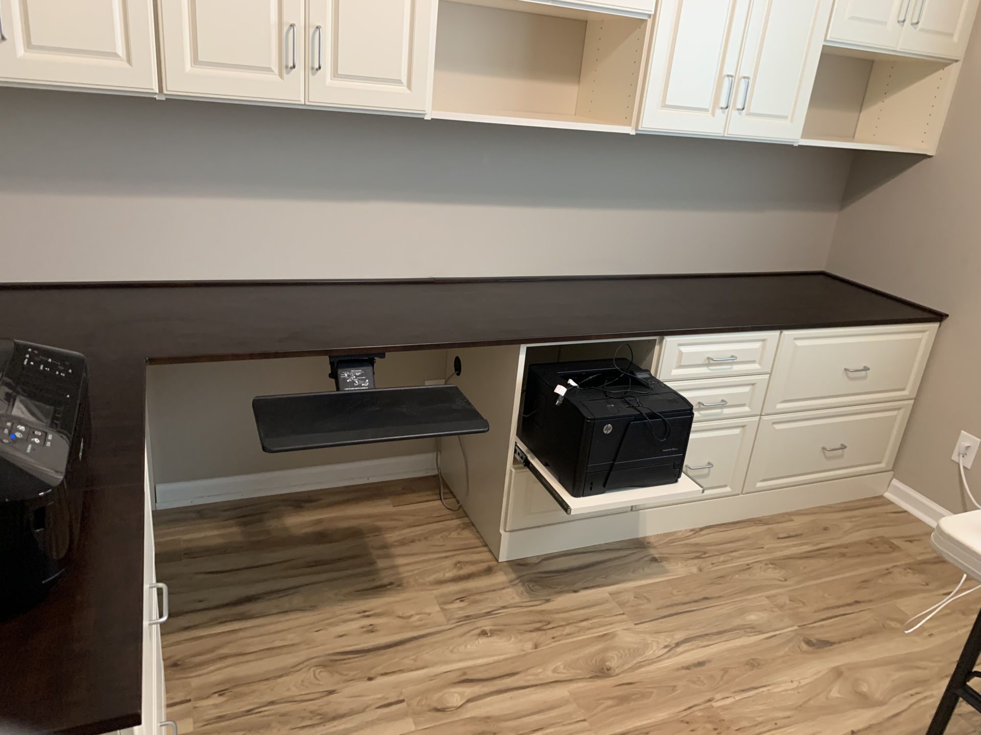 This is what I hear from our clients: working from home is here to stay. For some it may mean full time office hours logged remotely and for others it is a hybrid of working a couple of days each week in the office and the remaining days at home. If you are spending at least 10 hours weekly in front of a computer screen at home for your job, you are working from home. Many people have the luxury of a designated home office, study or spare bedroom where they can set up shop. For some, this space has already been claimed by one worker bee and now two worker bees need a quiet place to focus. For others, there is simply no room. We can help get creative in underutilized areas of the home to carve out space for work. I have seen some things… just because you put your laptop on a bedside table does not make said table a desk. Printers do not belong on the floor. Stacked bankers boxes in the corner of the dining room are neither aesthetically pleasing nor functional for paperwork you need to access. However, I have one client who takes her zoom meetings in her spacious custom closet because it is the quietest room in the house (hello toddlers!), and I fully support that decision as it led to some great referrals . Set yourself up for success with an appropriately sized desk with ample room to spread out. Customized desks or wall units should include file drawers, office supply storage and a safe place for the printer as well as all the cables. If the area needs to pull double (or triple) duty for homeschooling or online learning, let’s make sure it meets everyone’s needs. And don’t forget space for personal items, inspirational messages or simply some empty wall space for the eyes and mind to rest. #wfh
